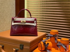 Hermès(爱马仕)Mini Kelly 枣红色 一级美洲鳄鱼皮 全手工缝制 臻品级别 金扣 19cm 2代