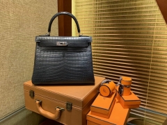 Hermès(爱马仕)Kelly 28cm 锡器灰 尼罗鳄鱼皮 顶级蜡线全手工