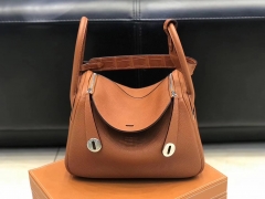 Hermès(爱马仕)Lindy琳迪包 金棕色 德国进口togo牛皮拼鳄鱼皮 蜡线全手工缝制 26cm