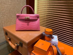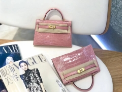 Hermès(爱马仕)Mini Kelly 粉色 一级美洲鳄鱼皮 顶级全手工缝制 臻品级别 19cm 2代