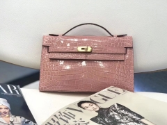 Hermès(爱马仕)MiniKelly迷你凯莉 藕粉色 尼罗鳄 美洲鳄 全手工缝制 1代 金扣 22cm