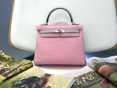 Hermès(爱马仕)Kelly凯莉包 樱花粉拼玛卡龙 雾面鳄鱼 银扣 25cm