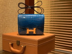 Hermès(爱马仕)Constance 18cm 伊滋密尔蓝 一级美洲鳄鱼皮 顶级手缝工艺 金扣