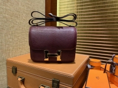 Hermès(爱马仕)Constance 18cm 波尔多酒红色 蜥蜴皮 顶级手缝工艺 金扣
