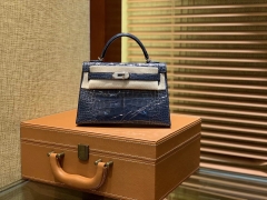Hermès(爱马仕)迷你2代 19cm 牛仔蓝 一级美洲 鳄鱼皮 顶级手工 银扣