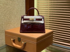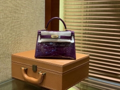 Hermès(爱马仕)迷你2代 19cm 葡萄紫 一级美洲 鳄鱼皮 顶级手工 金扣