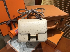 Hermès(爱马仕)Constance 18cm 羊毛白 南非进口鸵鸟 KK级别 顶级全手工 金扣