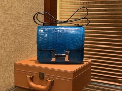 Hermès(爱马仕)Constance 23cm 伊滋密尔蓝 一级尼罗鳄鱼皮 顶级手缝工艺 金扣