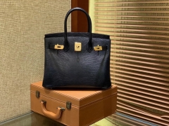 Hermès(爱马仕)Birkin 25cm 经典黑 野生蜥蜴巨蜥 奢侈尖端 金扣