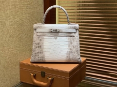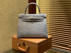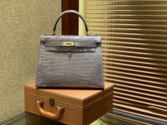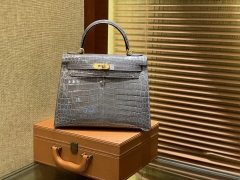 Hermès(爱马仕)Kelly 28cm 大象灰 一级尼罗鳄鱼皮 顶级手缝工艺 金扣