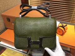 Hermès(爱马仕)Constance 23cm 橄榄绿 蜥蜴皮 顶级手缝工艺 金扣