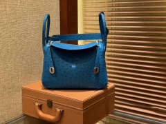 Hermès(爱马仕)Lindy 26cm 湖水蓝 南非进口鸵鸟皮 顶级工艺