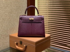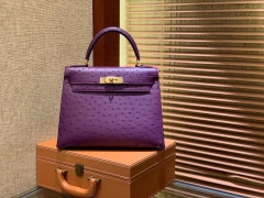 Hermès(爱马仕)Kelly 28cm 海葵紫 南非进口鸵鸟 顶级手缝工艺 金扣
