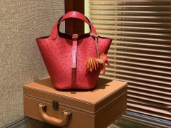 Hermès(爱马仕)Piction 18cm 心红色 最新红色系 南非进口鸵鸟 金扣