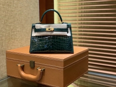 Hermès(爱马仕)迷你2代 19cm 祖母绿 一级美洲 鳄鱼皮 顶级手工 金扣