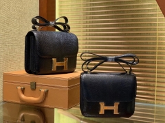 Hermès(爱马仕)Constance 18cm 经典黑 野生蜥蜴皮 顶级手缝工艺 金扣
