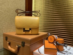 Hermès(爱马仕)Constance 18cm 琥珀黄 蜥蜴皮 顶级手缝工艺 金扣