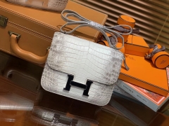 Hermès(爱马仕)Constance空姐包 喜马拉雅 一级尼罗雾面 鳄鱼皮 顶级全手工缝制 银扣 18cm