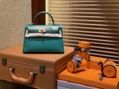 Hermès(爱马仕)MiniKelly 迷你凯莉 U4丝绒绿 德国掌纹牛皮 原版蜜蜡 全手工缝制 2代 19cm