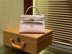 Hermès(爱马仕)MiniKelly 迷你凯莉 新樱花粉 Q粉 德国掌纹牛皮 原版蜜蜡 全手工缝制 2代 19cm