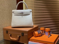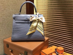 Hermès(爱马仕)Kelly 凯莉包 新款 喜马拉雅 雾面鳄鱼皮 顶级全手工缝制 银扣 28cm