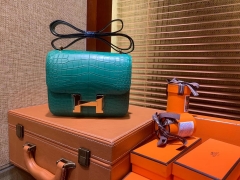 Hermès(爱马仕)Constance空姐包 湖水绿 一级尼罗雾面 鳄鱼皮 顶级手工 金扣 18cm