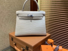 Hermès(爱马仕)Kelly 凯莉包 羊毛白 尼罗雾面 一级鳄鱼皮 顶级全手工缝制 银扣 28cm