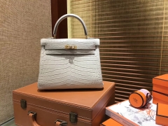 Hermès(爱马仕)Kelly 凯莉包 羊毛白 尼罗雾面 一级鳄鱼皮 顶级全手工缝制 金扣 25cm