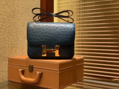 Hermès(爱马仕)Constance空姐包 靛蓝色 南非进口鸵鸟皮 顶级全手工缝制 23cm