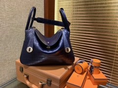 Hermès(爱马仕)Lindy 琳迪包 午夜蓝 一级鳄鱼皮 雾面 顶级全手工缝制 30cm