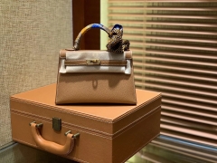 Hermès(爱马仕)MiniKelly 迷你凯莉 新唇膏粉 德国掌纹牛皮 原版蜜蜡 全手工缝制 2代 19cm
