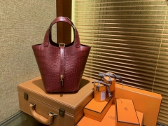 Hermès(爱马仕)Picotin 菜篮子 鳄鱼皮 石榴红 全手工缝制 18cm