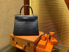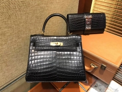 Hermès(爱马仕)Kelly 凯莉包 经典黑 尼罗雾面 一级鳄鱼皮 顶级全手工缝制 金扣 28cm