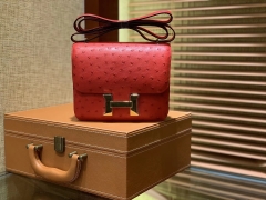 Hermès(爱马仕)Constance空姐包 新颜色 爱心红 鸵鸟皮 顶级全手工缝制 18cm