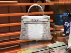 Hermès(爱马仕)Kelly 凯莉包 羊毛白 尼罗雾面 一级鳄鱼皮 顶级全手工缝制 银扣 25cm