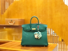 Hermès(爱马仕)Birkin 25cm 孔雀绿 Epsom掌纹小牛皮 金扣 原版蜜蜡线 顶级手缝