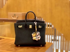 Hermès(爱马仕)Birkin 铂金包 黑色 哑光鳄鱼 25cm 金扣 定制