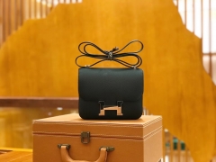 Hermès(爱马仕)Constance 18cm 经典黑 Epsom 掌纹小牛皮 银扣 原版蜜蜡线 顶级手缝