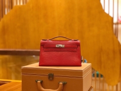 Hermès(爱马仕)Mini Kelly 22cm 大红 南非野生蜥蜴皮 银扣 全手工缝制 顶级高订
