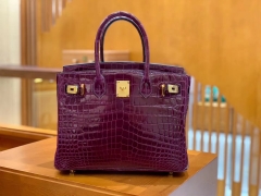 Hermès(爱马仕)Birkin 30cm 海葵紫 尼罗鳄鱼皮 金扣 原版蜜蜡线 顶级手缝 现货