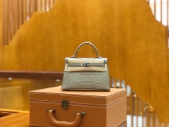 Hermès(爱马仕)Mini kelly 二代 19cm 美洲鳄鱼皮 珍珠灰 银扣 原版蜜蜡线 顶级手缝