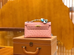 Hermès(爱马仕)Mini Kelly一代 奶昔粉 南非KK级鸵鸟皮 金扣 原版蜜蜡线 顶级手工缝制