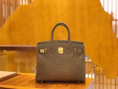 Hermès(爱马仕)新增现货 Birkin 25cm 玛瑙灰 南非KK级鸵鸟皮 金扣 原版蜜蜡线 顶级手工缝制