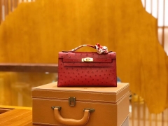 Hermès(爱马仕)Mini Kelly一代 暗红色 南非KK级鸵鸟皮 金扣 原版蜜蜡线 顶级手工缝制