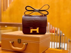 Hermès(爱马仕)Constance 18cm 波尔多酒红 美洲鳄鱼皮 金扣 原版蜜蜡线 顶级手缝 现货
