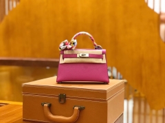 Hermès(爱马仕)Mini Kelly二代 玉兰粉 Epsom掌纹小牛皮 银扣 原版蜜蜡线 顶级手工缝制