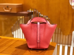 Hermès(爱马仕)Picotin 18cm 惊艳粉 玉兰粉 鸵鸟皮拼Togo皮 银扣 原版蜜蜡线 顶级手工缝制