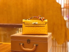 Hermès(爱马仕)Mini Kelly一代 琥珀黄 南非KK级鸵鸟皮 金扣 原版蜜蜡线 顶级手工缝制