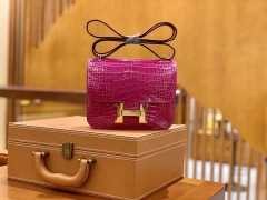 Hermès(爱马仕)Constance 23cm 梦幻紫 野生湾鳄 金扣 原版蜜蜡线 顶级手缝 现货