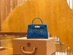 Hermès(爱马仕)Mini kelly 二代 19cm 美洲鳄鱼皮 伊兹密尔蓝 银扣 原版蜜蜡线 顶级手缝
